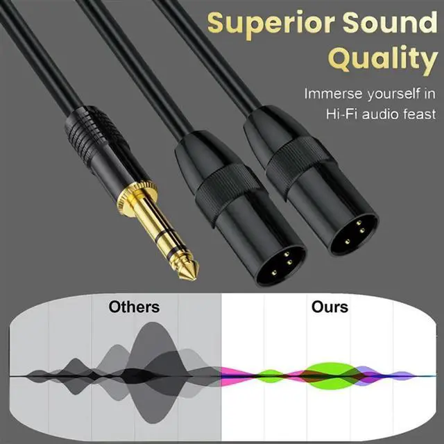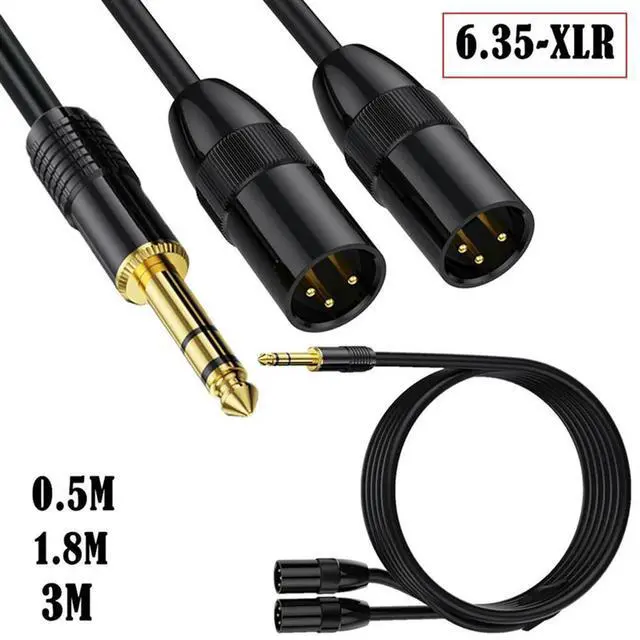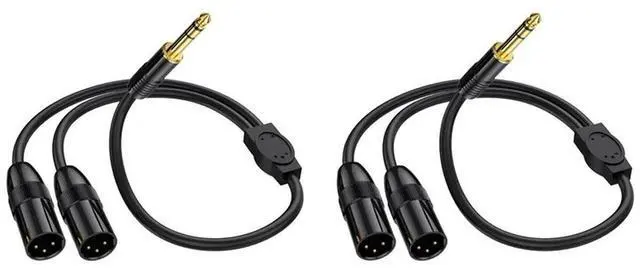 2Pcs 6.35M m TRS Male Plug To 2 Dual XLR Male Microphone Stereo Unbalanced Audio Converter Adapter Y Splitte Cable Cord-C