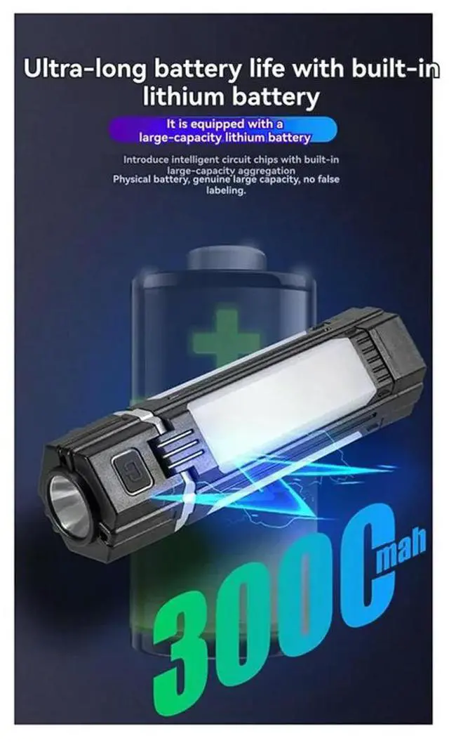 3000MAH Work Light Flashlight Portable Camping Light Adjustable Repair Light USB Rechargeable Warning Light