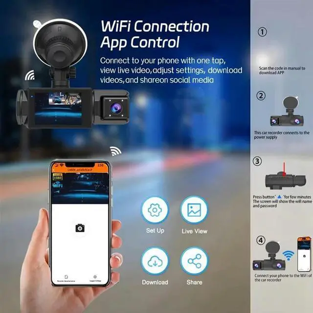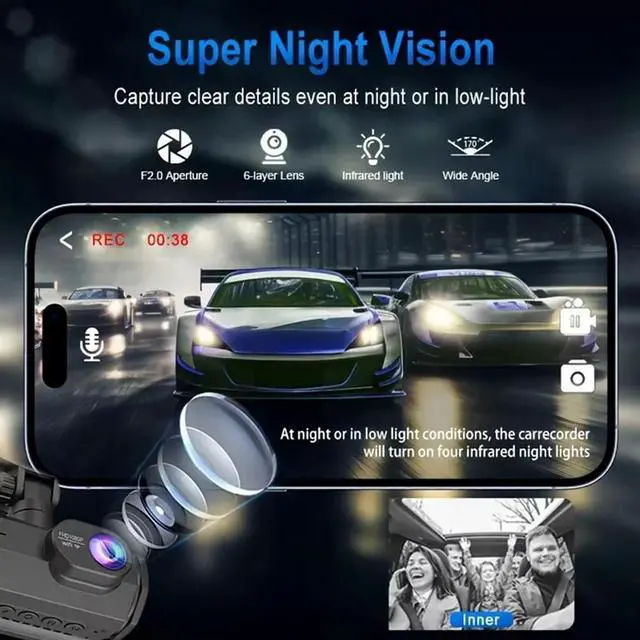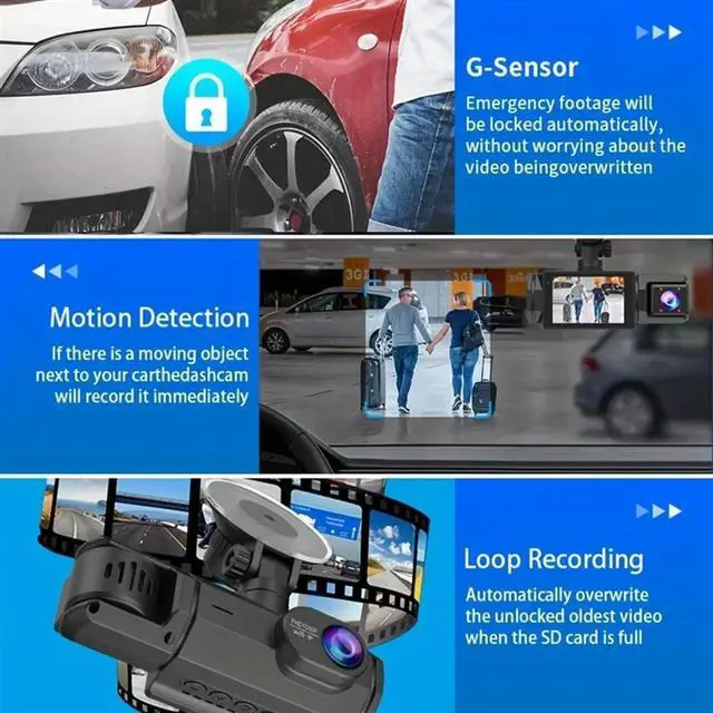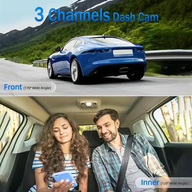 Car DVR Camera 1080P 3-Lens Dash Cam Inside Vehicle Three Way Video Recorder Dashcam Registrator Camcorder