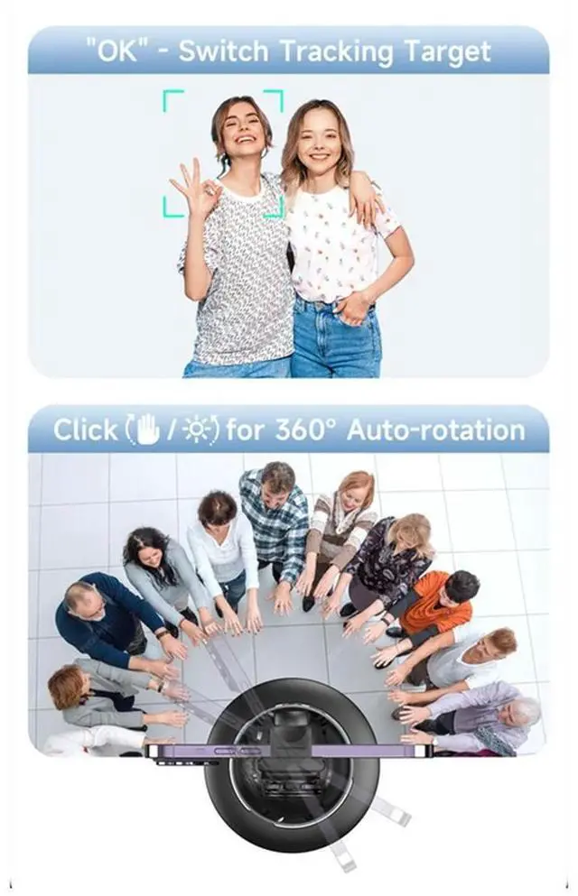 P03 Pro 360 Rotation Gimbal Stabilizer AI Following Face Tracking Desktop Gimbal PTZ For phone Live