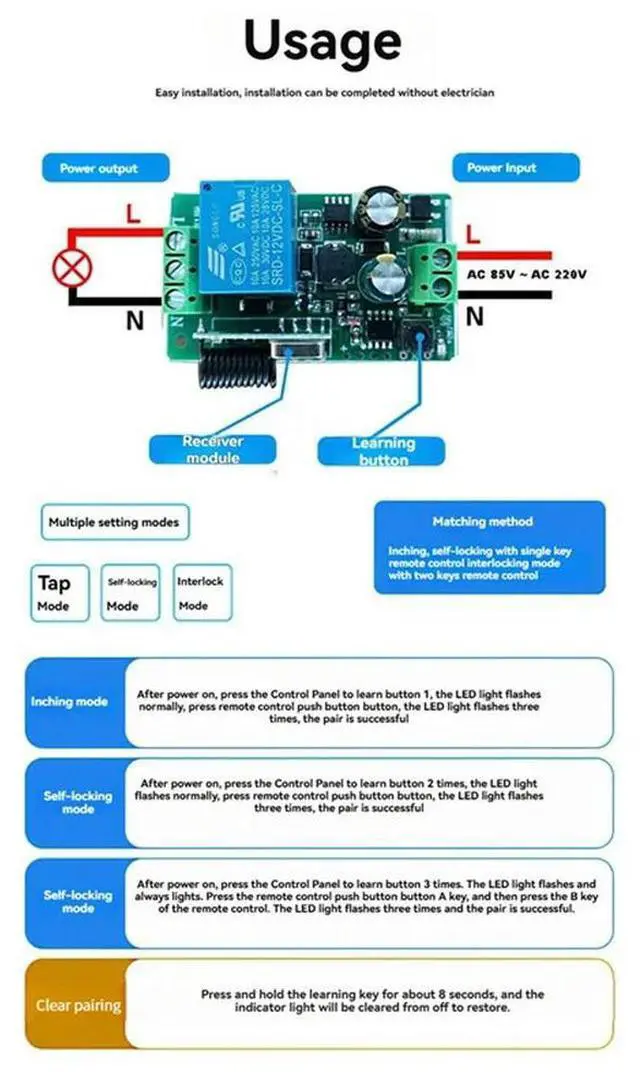 433Mhz Wireless Remote Control Switch RF Relay 12V Remote Control Switch For Garage Door Motor Light Control
