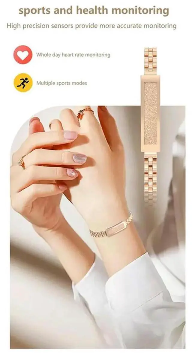 Heart Rate Monitor Hand Bracelet Gold Zinc Alloy For Women Bluetooth Connected APP Birthday Gift