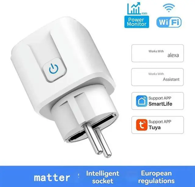 Matter 16A Socket 16A Plug With Power Monitoring APP Remote Control Works With Alexa Google EU Plug