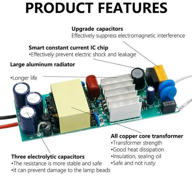 2X Isolation LED Bulb Driver Power 50W 1500Ma Power Supply Constant Current Control Built-In Spotlight Driver Power