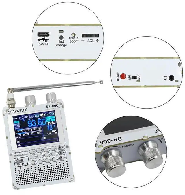 DP-666 Radio High Sensitivity TEF6686 Full Band FM AM LW MW SW Shortwave ESP32 RDS 2.8 Inch IPS Touch Screen