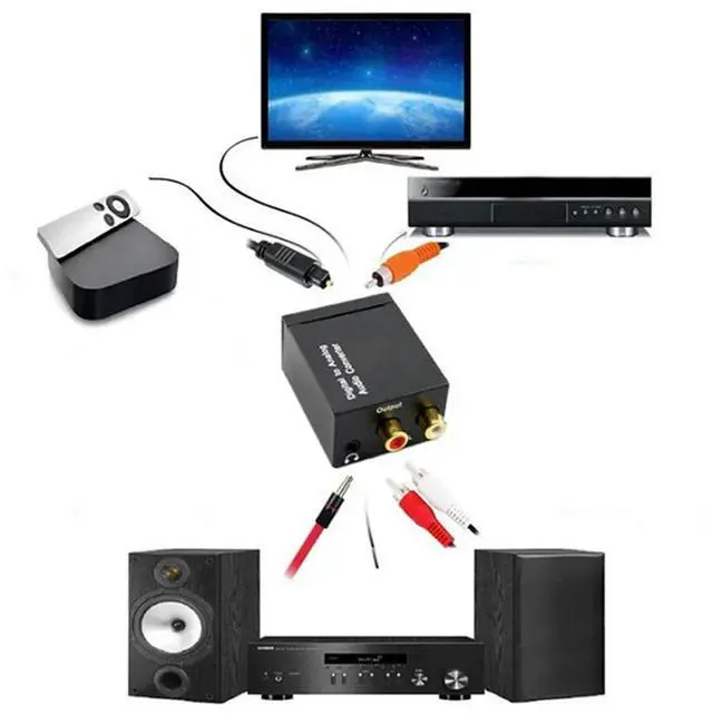 2Pcs 3.5M m Jack Coaxial Optical Fiber Digital To Analog Audio AUX RCA L/R Converter Digital Audio Decoder Amplifier