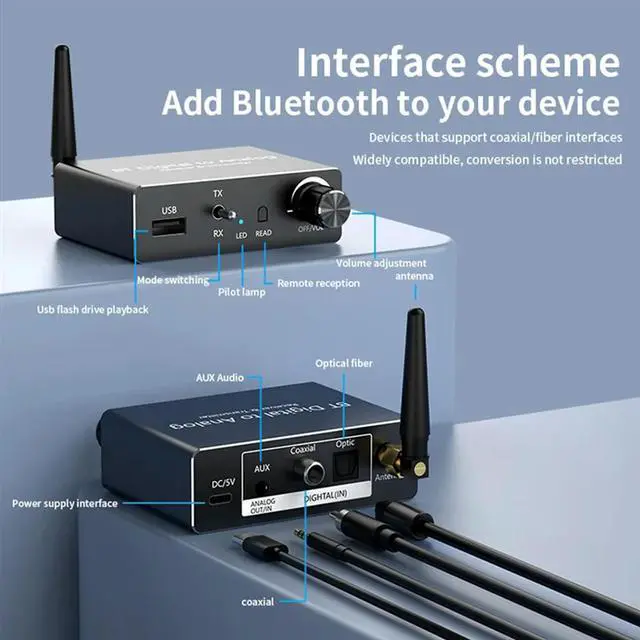 BT 5.3 SPDIF Optical To L/R RCA Digital To Analog Audio Converter DAC Receiver Transmitter