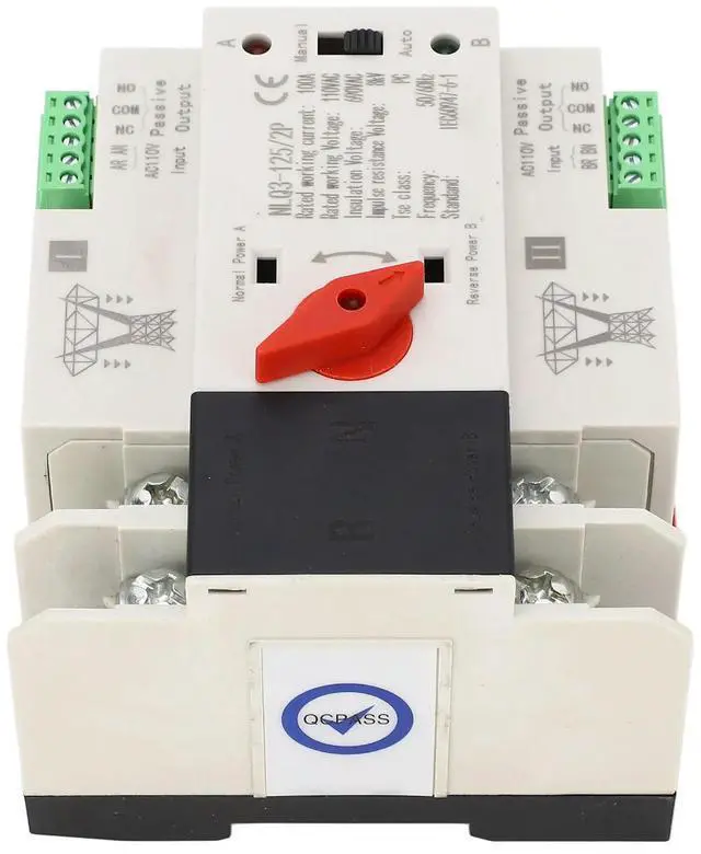 AC110V 100A Dual Power Automatic Transfer Switch 35mm Rail Mounting 2P ATS Safe Protection Generator Transfer Changeover Switch