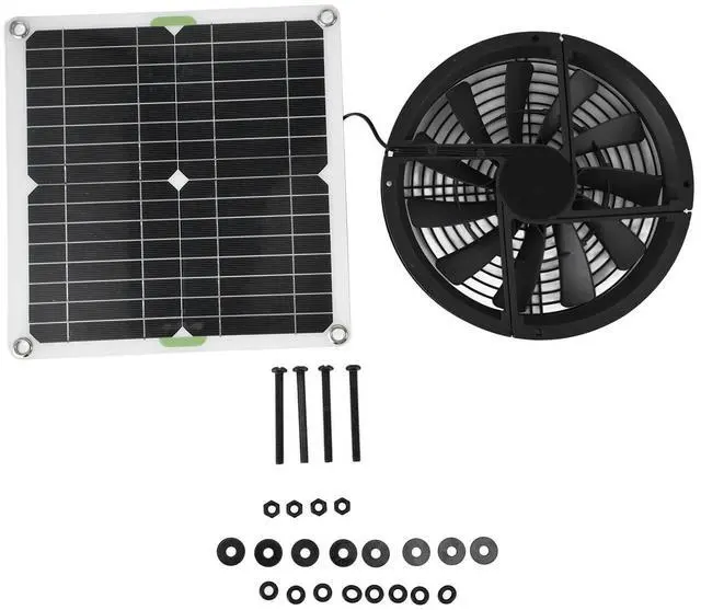 Premium Solar Panel Fan Kit 10in 100W Waterproof Solar Panel Round Ventilation Case Exhaust Fan for Chicken Coop Greenhouse Shed