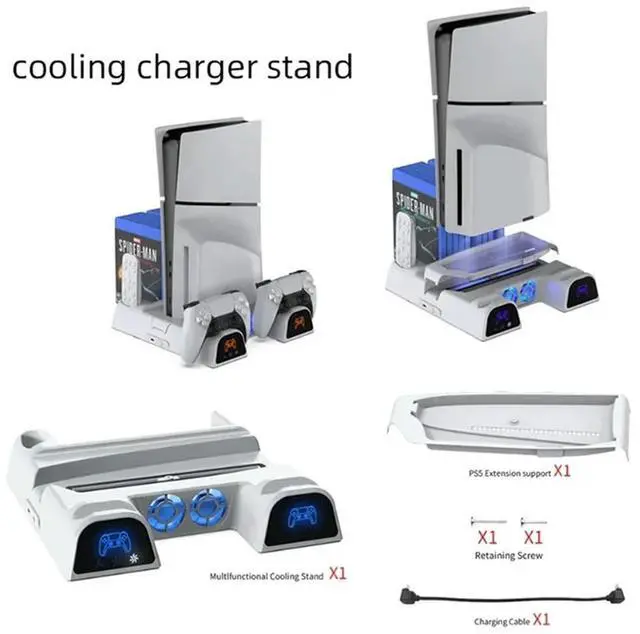 For PS5 Slim Multifunctional Cooling Charging Base With Disc Rack Suitable For PS5 Controller Charging Base