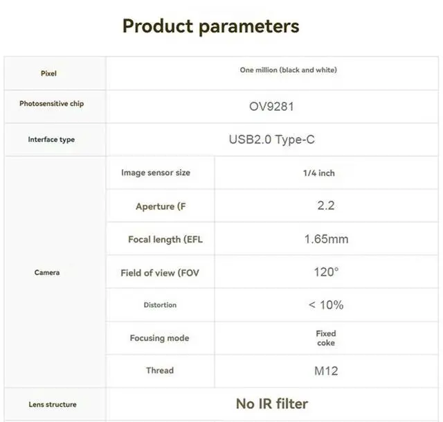 1MP USB Camera Module OV9281 1280X720 Resolution Supports 120FPS High Frame Rate Recording Global Shutter 120° FOV