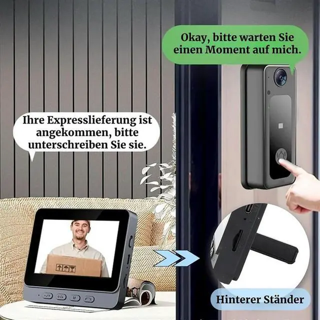 Wireless Bell With Intercom Camera, 4.3 Inch Screen Video Night Vision Doorbell, Wide Angle Lens