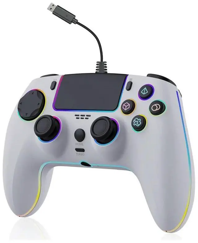For PS5 Wired Gamepad RGB Lights Hall Trigger Vibration Continuous Back Button PC/Steam Gamepad SZ-5005W White