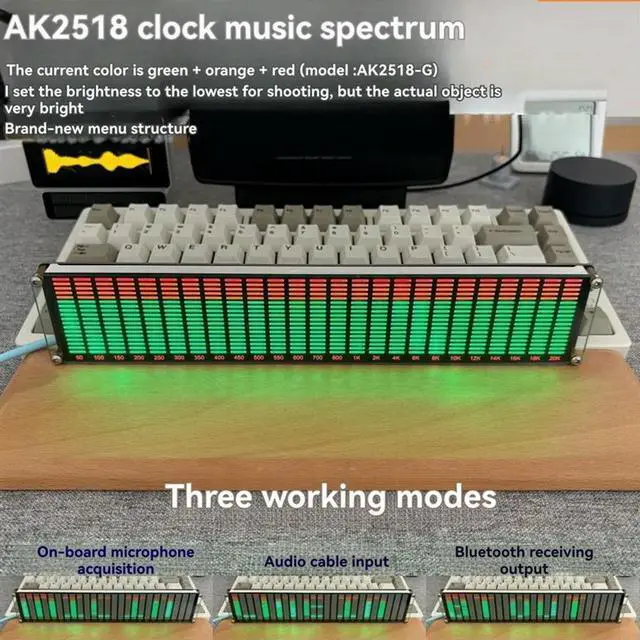 AK2518 Clock Bluetooth Music Spectrum LED Music Spectrum Green+Orange+Red Display Color Audio Signal Melody Rhythm Lamp