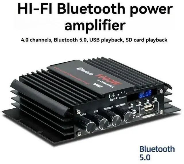 Hifi Stereo Sound Amp USB Bluetooth 5.0 Amplifier 4 Channel 12V For Car Home Computer Lossless Music