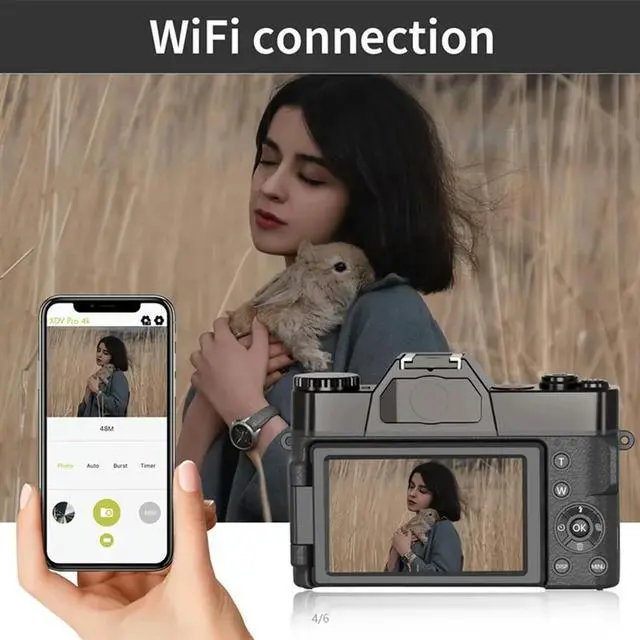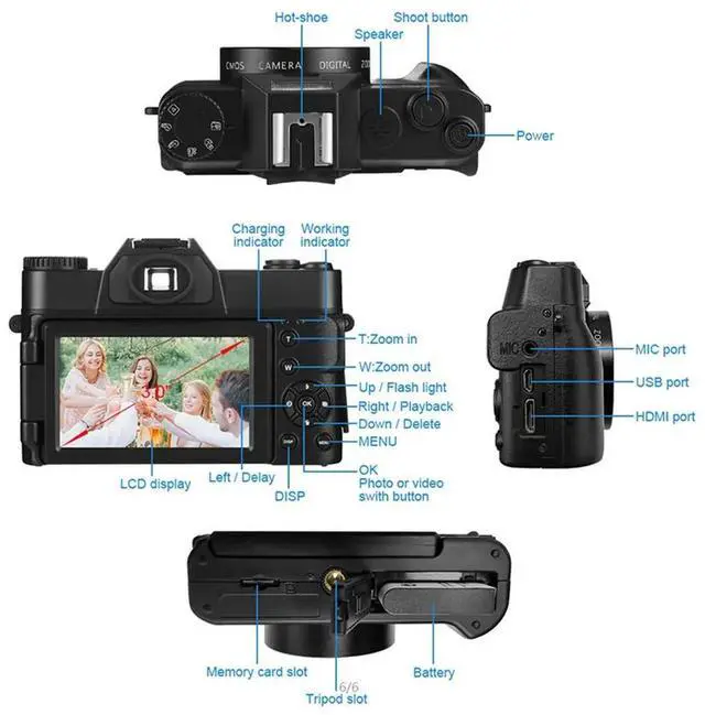 Digital Camera 4K HD Camcorder Webcam Wide Angle Lens 16X Digital Zoom 48MP 3 Inch Flip Screen Recorder