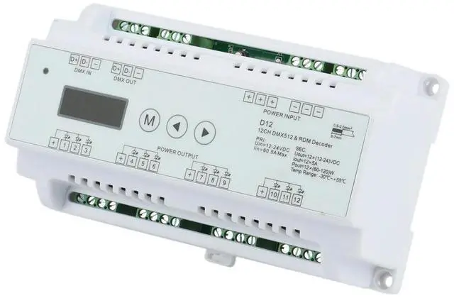 DC5V-36V Input 12 Channels CV DMX512 Decoder,5Ax12ch Output With Display For Setting DMX Address For Led Rgb Led Strip