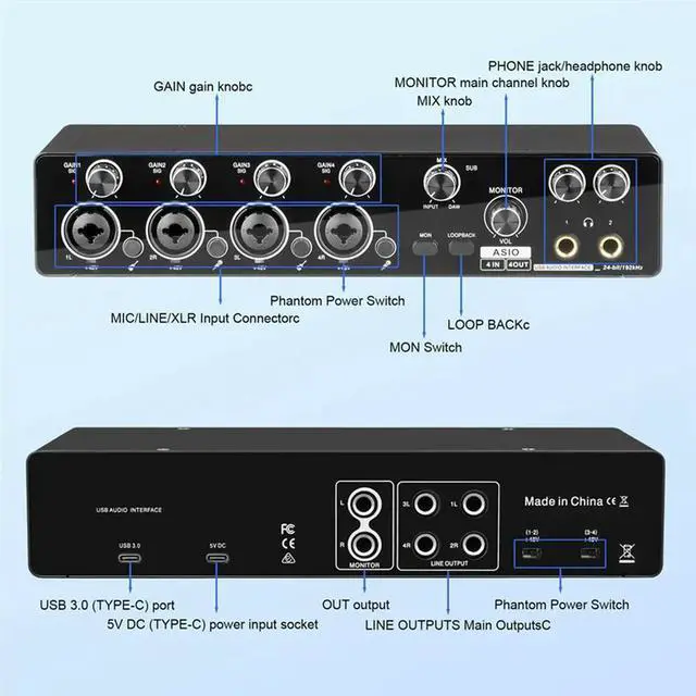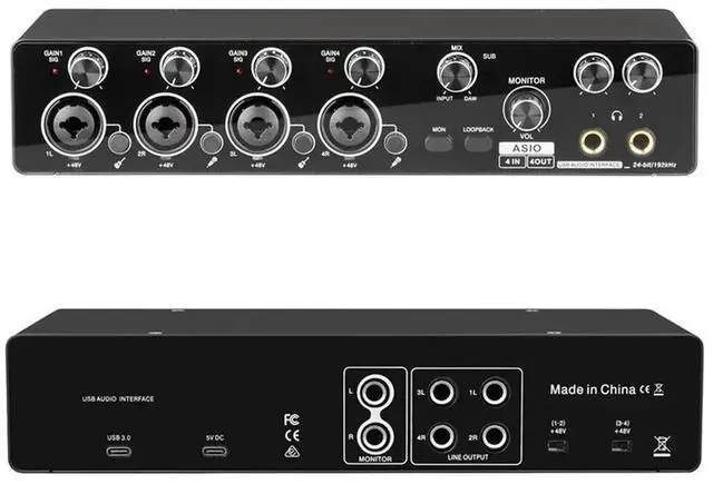 Professional 4 Channel USB Audio Interface For Studio For Live Recording Sound Card Mic Preamplifier Support ASIO
