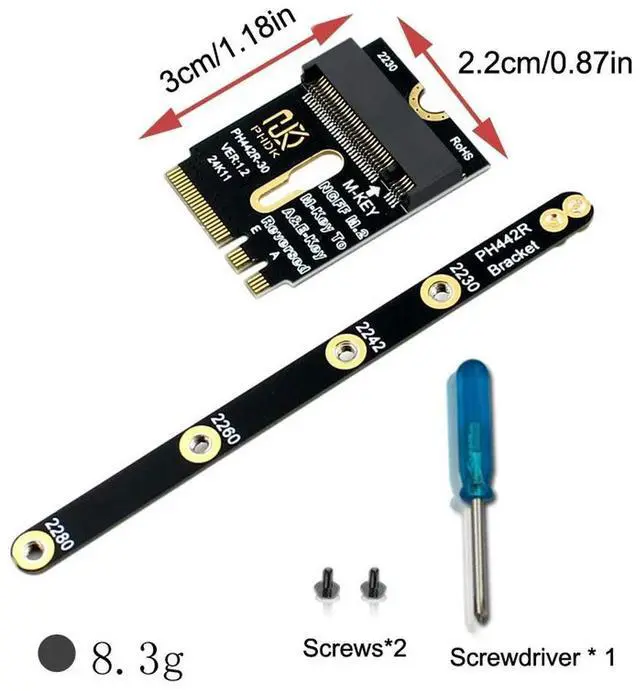 M. 2 A+E to NVMe SSD Adapter Interface A/E Key to M Key PCIE 4.0 Riser Card with Bracket for 2230 2242 2260 2280