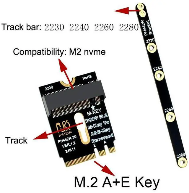 M.2 A+E to NVMe SSD Adapter Interface A/E Key to M Key PCIE 4.0 Riser Card with Bracket for 2230 2242 2260 2280