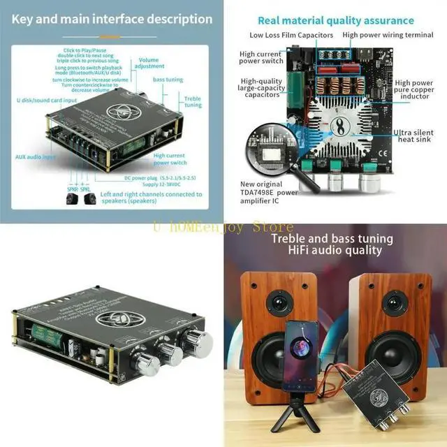 160Wx2 TDA7498E Bluetooth-compatible 5.1 Stereo Treble Bass Power Amplifier Board Dual Channel Heat Sink T160H
