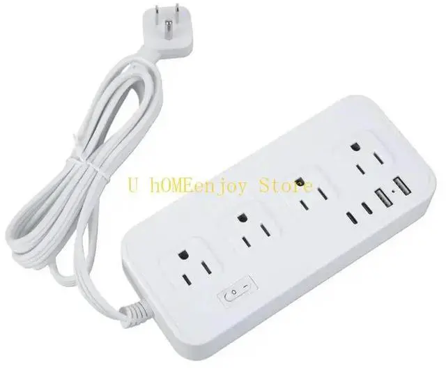 Flat Plug Power Strips 2Prong Adapter 5FT Cord 8 Outlets with USB Charging