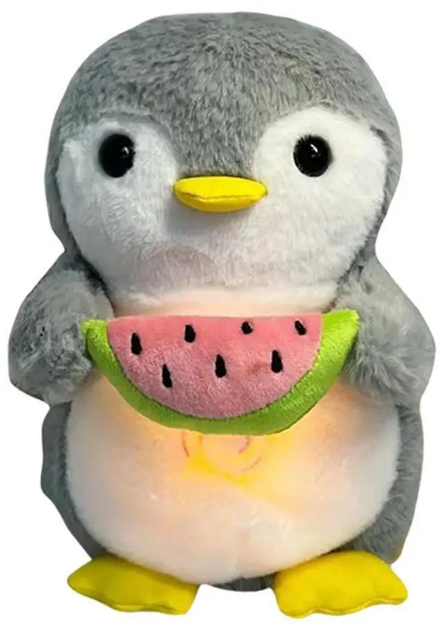 Cute Penguin Stuffed Animal Baby Sound Machine with Music Lights Rhythmic Breathing Motion Comfort Doll Xmas Gifts for borns