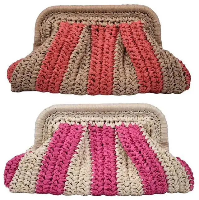 Straw Clutch Handbag Handmade Clutch Purse Summer Beach Bag Striped Woven Handbag Designer Weaving Pouch for Party Vacation