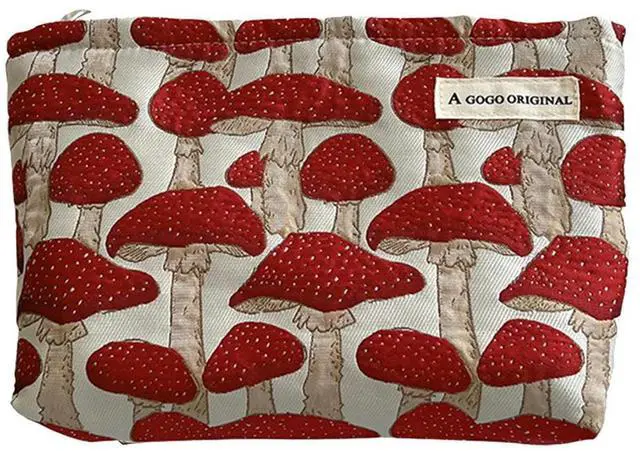 Mushroom Print Cosmetic Bag Multipurpose Women Toiletry Organizer Bag Large Capacity with Zipper Portable Holiday Accessories