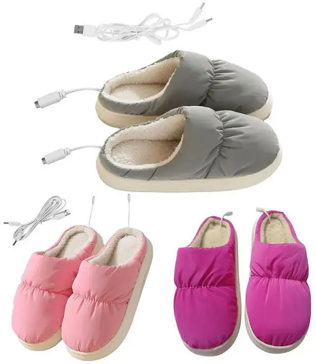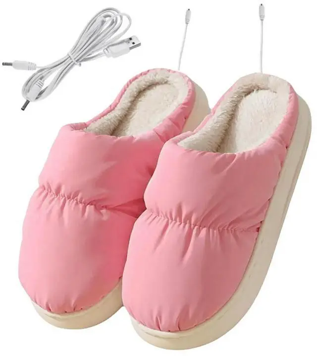 Electric Heating Slippers Adjustable Temperature Plush Heated Slippers Electric Foot Warmer Winter Heated Boots Christmas Gifts