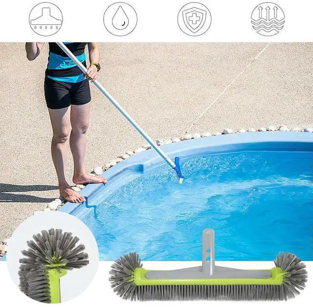 17.5 Inch Swimming Pool Scrub Brushes with Round Ends Heavy Duty Pool Brush Head for Cleaning Pool Tiles Walls Floor Steps