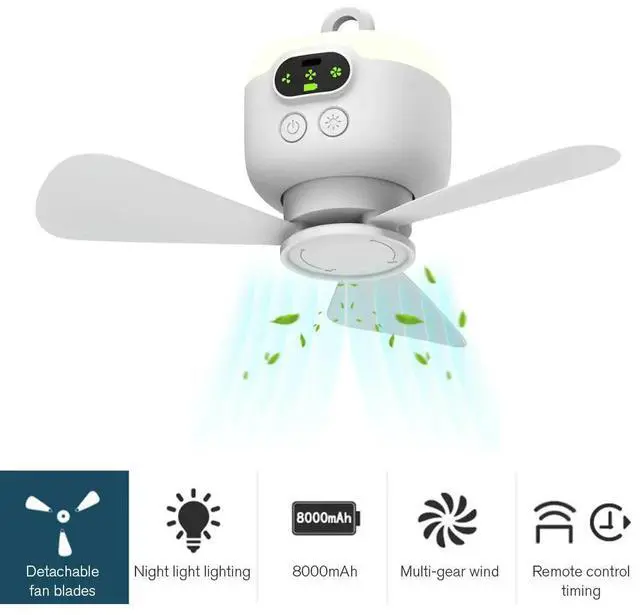 Portable Wireless Ceiling Fan Light with Remote Control Camping Fan Tent Fan Outdoor Fan for Outdoor Camping Dorm