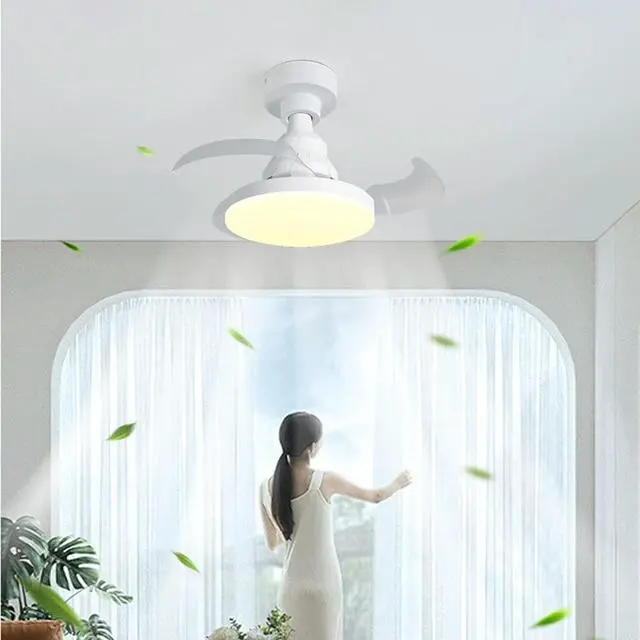 Cordless Fan with LED Lantern Remote Control Dimming Fan 3 Gears Electric Silent Ceiling Fan for Dining Room Bedroom Living Room