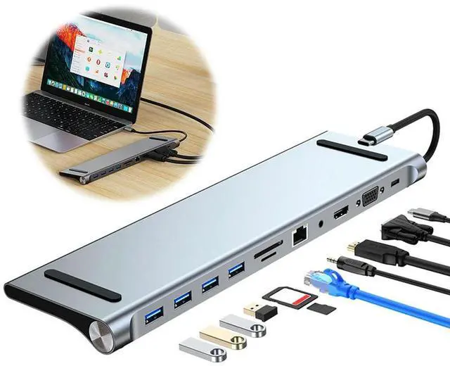 11 in 1 USB C Docking Station 100W PD SD/TF Audio USB C Dock 1* USB 3.0 3*USB2.0 for MacBook Pro/Air Surface