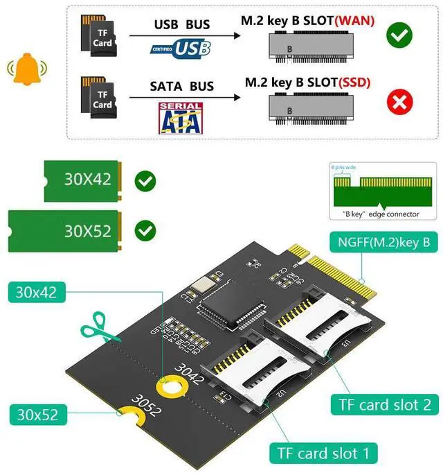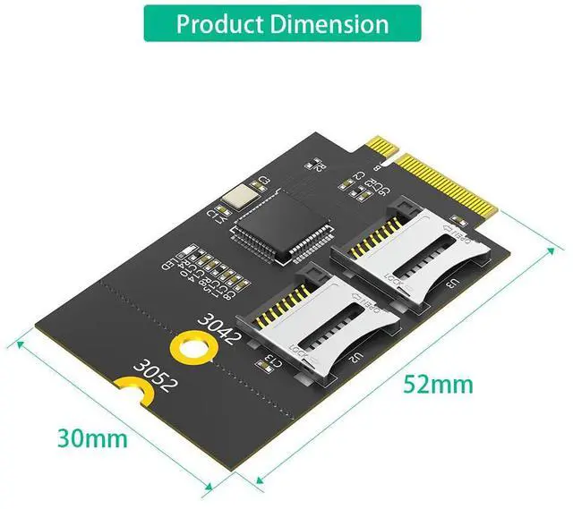 Dual Micro SD Card TF Card to NGFF M. 2 Key B Adapter Supports USB Bus Not SATA Bus Supports M. 2 key B in format 3042/3052