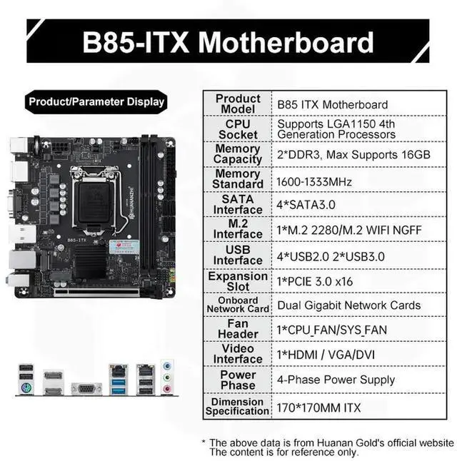 B85-ITX Motherboard Support LGA1150 Series Processors DDR3 Dual-Channel 1333/1600MHz 16G M. 2 NVME Motherboard
