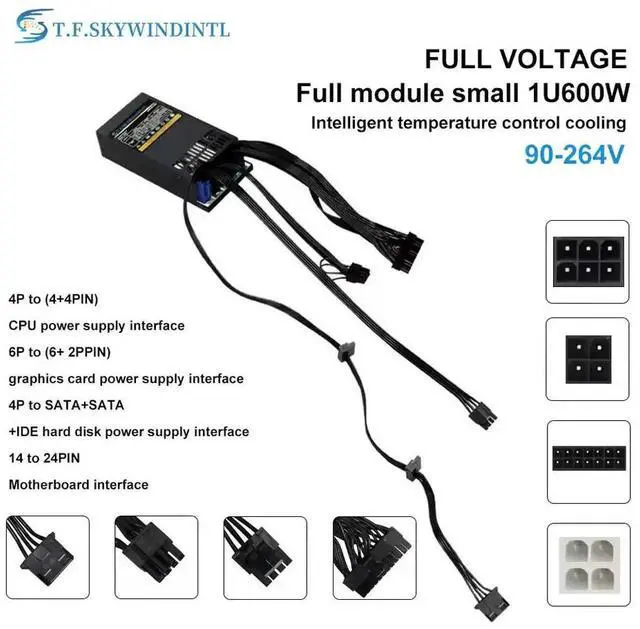 600w Power Supplies Flex ATX Power Supply Full Modular with Fixed Cables Rated 550W MAX 600W with 6Pin PCIe Connector 110V 220v