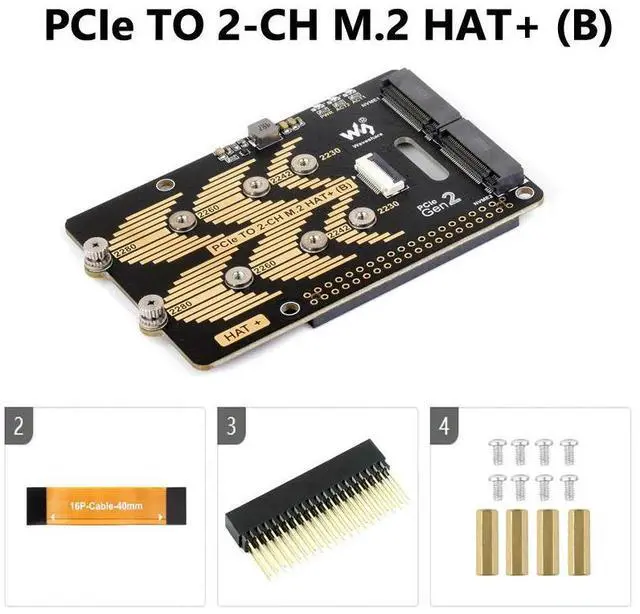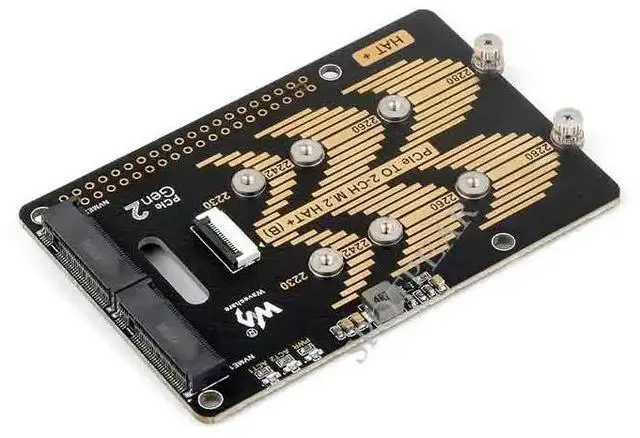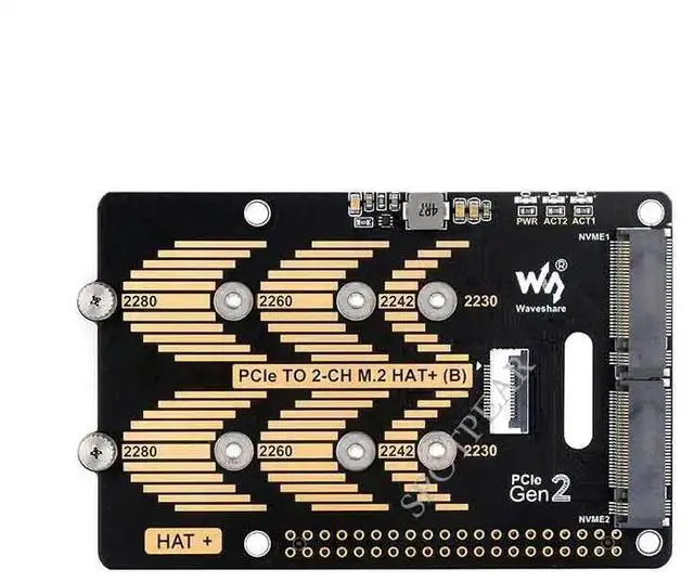 Pi 5 PCIe to 2CH M.2 NVMe SSD Adapter Board HAT (B) Pi5-PCIe-2280-2242-2230 for PI5