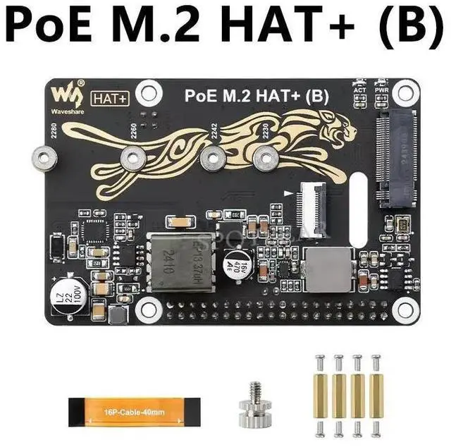 Pi 5 PoE Power And PCIe M. 2 NVMe SSD HAT PLUS (B) 2230/2242/2260/2280 For PI5