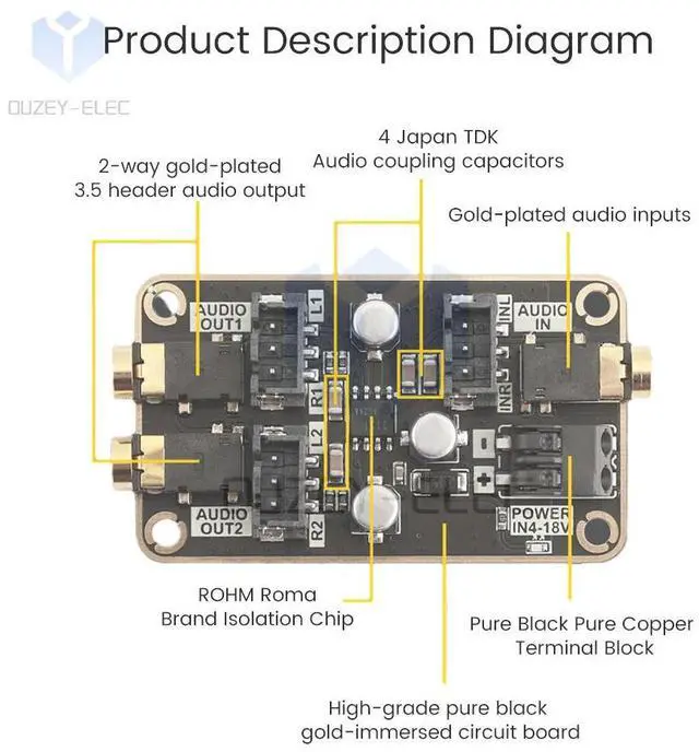 Audio Isolation Noise Reduction Module Audio DSP Common Ground Amplifier Board Car Audio DS Power Amplifier Board DC4-18V