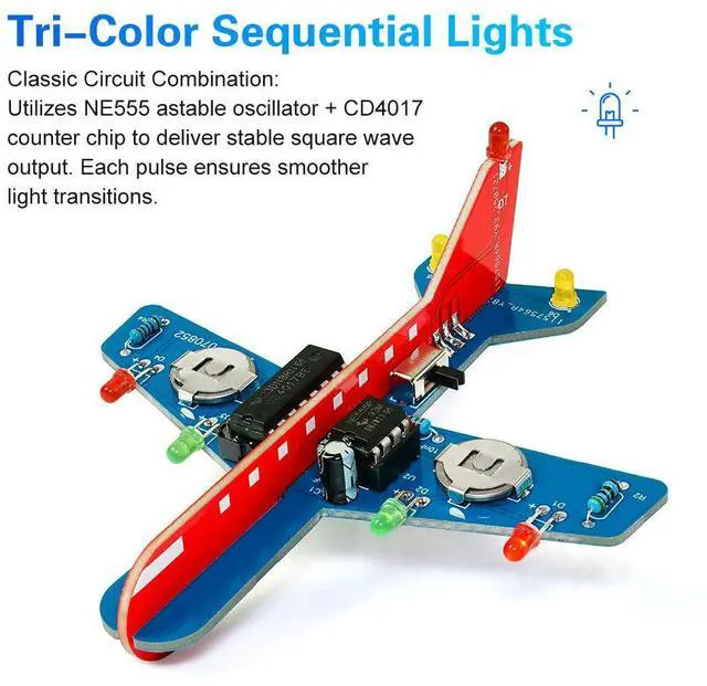 Airplane Model LED Running Light Electronic DIY Kit Basic Circuit Teaching Experiment Soldering Practice Module
