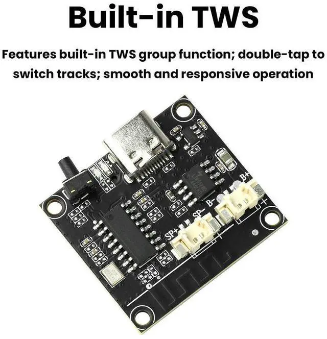 DC 5V Bluetooth Audio Player Supports TWS Interconnection 3W Audio Amplifier Module Type-C Interface Home Theater Amplifier