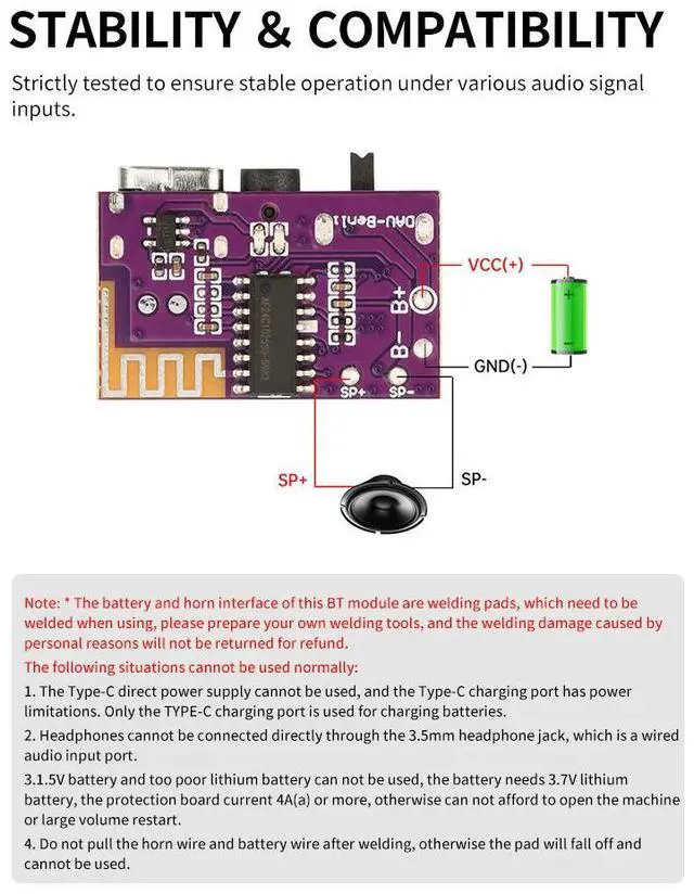 DC3.5V-5V Bluetooth Amplifier Module 5W Mono Audio Amplifier BT Decoder Board Support TWS Pairing Type-C interface