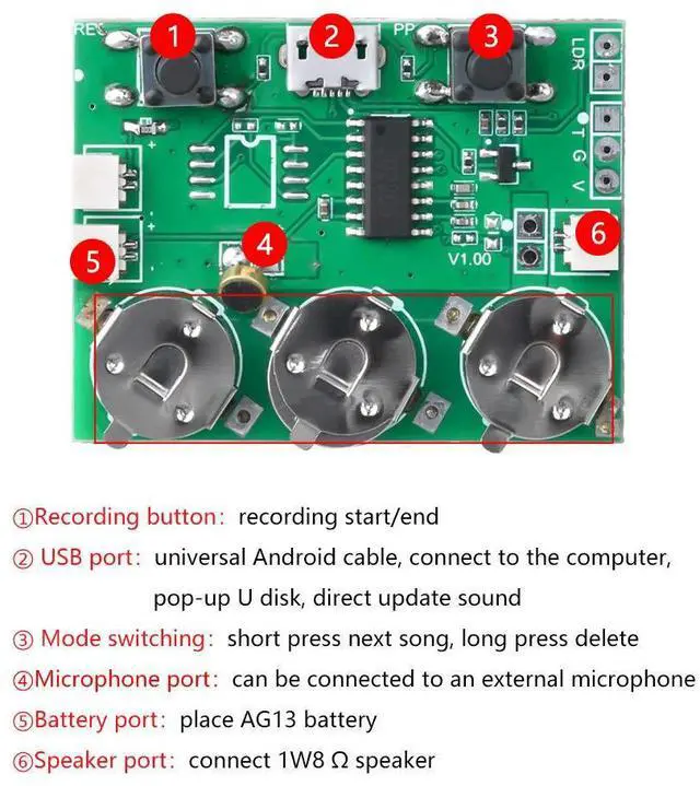 DIY Voice Greeting Card Chip 100 Seconds Recordable Voice Sound Chip USB Audio Voice Greeting Card for Holiday Moudle