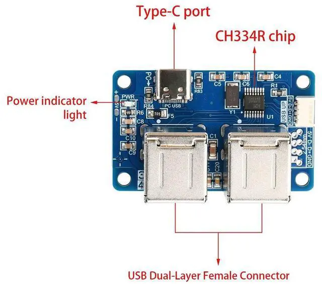 USB 2.0 USB Hub 1 to 4 Way Splitter Module USB Hub Driver-Free 4-Port USB Hub Type-C Interface