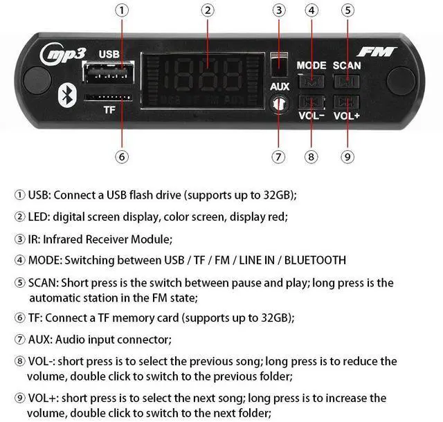 DC 7-15V Bluetooth Audio Decoder Board 2 * 25W Car Audio Amplifier Module Audio Amplifier Support Bluetooth Talking