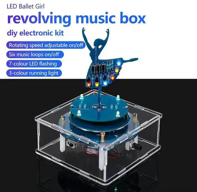 DC 5V Rotary Music Box DIY Kit Music/Rotary Independent Control Adjustable Speed Electronic Teaching Soldering Practice Module