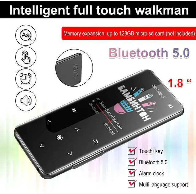 Multifunction MP3 Music Player Bluetooth 5.0 Walkman Built-in Speaker Microphone Hi-Fi Stereo Sports MP3 Player MP4 Video Player