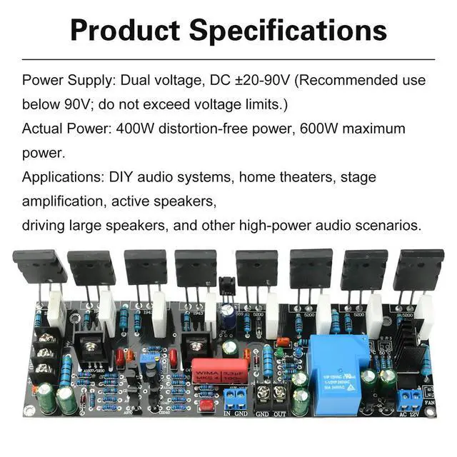 DC 20~90V Power Amplifier Board Mono 400W High Power / 600W Peak Power Audio Amplifier Speaker Protection Home Theater Amplifier