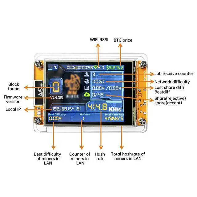Bitcoin Mining Rig Bitcoin Random Reward Game Suite Hashrate 980KH/s High-Performance ESP32 Development Board